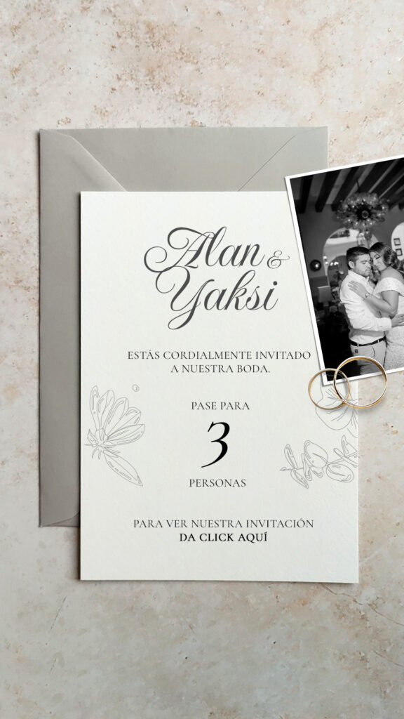 Incluye 5 PDFs con diseño personalizado y número de pases para compartir fácilmente con tus invitados.
